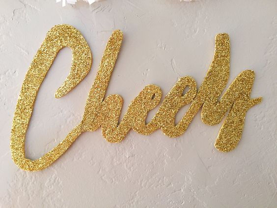 We LOVE a good tassel garland, it's all about the details ya'll! We paired this gold + white garland with a glittering 'Cheers' sign created from foam board and a little elbow grease! For this DIY, you will need to either print out a large phrase such as 'Cheers' or hand letter your phrase on a large piece of foam board. Next, carefully cut the phrase out of the foam board and lightly sand the sides with a light grain piece of sandpaper or a nail file. Lastly, use a paintbrush to spread glue (Mod Podge or Aleene's Original Tacky Glue are our go-to fav's!) across the phrase and cover with your desired color of glitter (or craft paint!). Pro Tip: Cover the glitter layer with an additional coat of Mod Podge to ensure that the glitter will stay in place instead of all over your floor as I have made the mistake of doing once or twice.